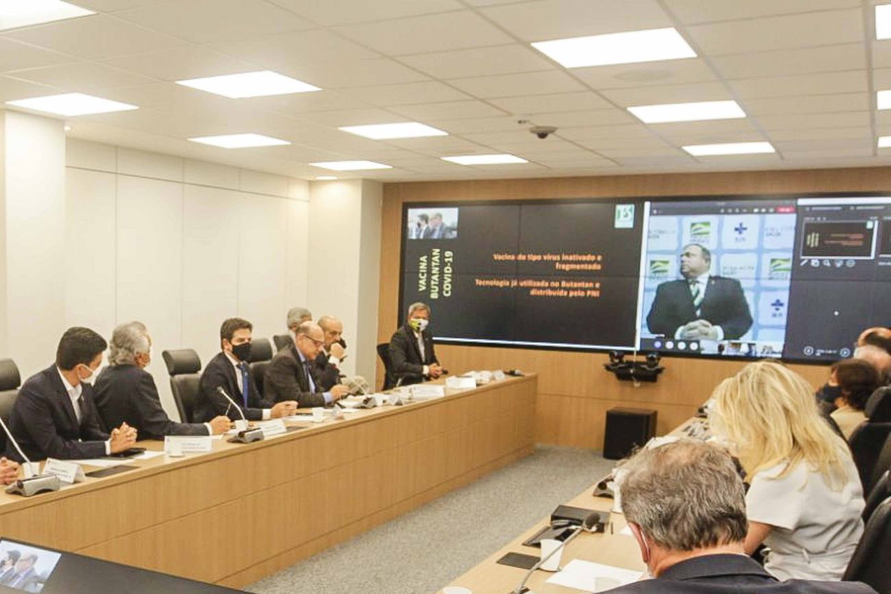 O governador Helder Barbalho participou junto aos outros 26 gestores estaduais de reunião com o ministro da Saúde, Eduardo Pazuello, em Brasília. O encontro desta terça-feira (20) foi para a assinatura do protocolo de intenções para aquisição doses da Vacina Butantan - Sinovac/Covid-19, em desenvolvimento pelo Instituto Butantan.